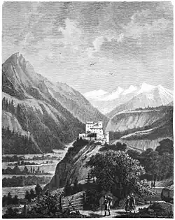 Die Burg liegt nördlich von Matrei auf einer Rückfallkuppe am östlichen Hang des Tauerntals und beherrscht den Matreier Talkessel.