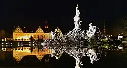 - ↑ Die These von Walter-Gerd Fleck 1952/54 eines vorangehenden Idealentwurfs in Form eines gleichseitigen Dreiecks kann nach den neusten Forschungen als überholt gelten. Siehe den Sammelband der Staatlichen Schlösser und Gärten von 2019 und darin vor allem den Aufsatz von Ziegler.