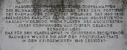 An der Nordseite des Hauses wurde auf der Attika des siebenachsigen Portikus ein von Josef Klieber (1773–1850) gestalteter Wappenstein gesetzt, in dem der nassauische Löwe mit den Wappentieren des Hauses Habsburg-Lothringen, Adler und Löwe, heraldisch zusammengeführt wird.[5]