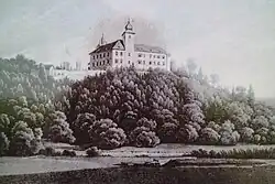 An der Zufahrt zum Schloss befindet sich eine Statue der Maria mit Kind aus der Mitte des 17. Jahrhunderts. Sie stammt aus dem Palais Trauttmansdorff in Graz und wurde 1955 restauriert.
