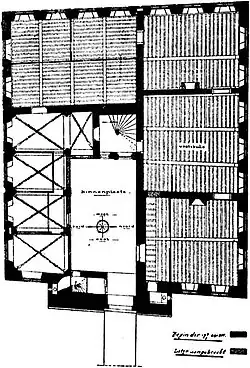 Die Abmessungen des Schlosses betragen 23 × 24 Meter. Die Südfassade ragt leicht über den Eingang hinaus. In der Mitte befindet sich ein Innenhof mit einer Kolonnade. Der Turm ist in einer Ecke des Hofes angeordnet. Unter der gesamten Burg befinden sich Keller, und die Wandstärke variiert von 1,60 Meter bis 80 Zentimeter. Das Schloss ist von einem Wassergraben umgeben und wird über eine Zugbrücke erschlossen.