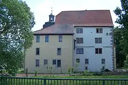 Es besteht aus drei Gebäuden um einen Lichthof. Am Wassergraben hielt man damals noch fest. Im hiesigen Schloss ließ das DDR-Regime Aussiedler aus deutschen Ostgebieten einziehen. Bis zum Ende der DDR wohnten 27 Familien im Schloss.