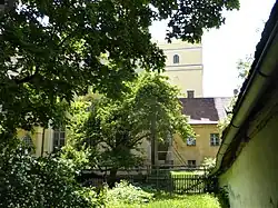 Die ursprüngliche Schlosskapelle wurde 1398 von dem Passauer Fürstbischof Georg von Hohenlohe eingeweiht. Die heute nördlich gelegene katholische Schlosskapelle Mariä Empfängnis stammt von 1840 und wurde nach dem Schlossbrand von 1911 überarbeitet. Die zu dem Ensemble gehörende ehemalige Mälzerei ist ein Satteldachbau mit Treppengiebeln und einem Uhrturm mit Zinnen, das Gebäude wurde Ende des 18. Jahrhunderts errichtet und 1840 umgebaut. Im Schlossbereich befindet sich ein barocker Schlossbrunnen mit einer Steinfigur aus der ersten Hälfte des 19. Jahrhunderts; nördlich davon ist der alte Ziehbrunnen. Ein Teil der Schlossmauer mit einem Pavillon von 1911 ist noch erhalten.