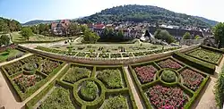 Zu Beginn des 17. Jahrhunderts entstand am Südhang des Schlossbergs ein Terrassengarten. Die von Sandsteinmauern gestützten, leicht nach Süden geneigten Terrassenflächen dienten mit ihrer Kombination aus Zier- und Nutzpflanzen sowie Obstbäumen als Lustgarten, aber auch zur Versorgung der Hofgesellschaft. Die Mittelachse war durch eine skulpturengezierte Kette von Brunnen betont. Im späteren 17. Jahrhundert wurde die Wasserkunst an die Ostseite verlegt und flankierte dort die neu entstandene Treppenanlage. Ab dem 18. Jahrhundert verfiel die Terrassenanlage, und die Treppe wurde mehrfach überformt. Bis 2011 wurde die Treppenanlage saniert, bis 2015 folgte die Wiederherstellung der Terrassenanlage in ihren Grundstrukturen. Als Vorlage für die ornamentale Bepflanzung der oberen Terrasse diente eine nachweislich dieser Fläche zuzuordnende Entwurfszeichnung von 1672. Die Beet- und Gehölzpflanzungen der Gesamtanlage orientieren sich an archivalischen Belegen. Der Obstgarten dient der Pflege historischer Sorten.
