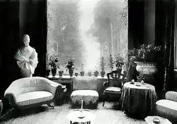 Bemerkenswert ist der Salon, mit seinem Panoramafenster im polygonalen Vorbau, welches einen direkten Blick auf den See ermöglicht. Die Einrichtung bestehend aus Brokat bezogenen Möbel und hochwertigen Holzeinbauten. Erwähnenswert ist die Porträtbüste von Herzogin Elisabeth von Sachsen-Weimar-Eisenach, diese flankierte das Panoramafenster linksseitig. Es handelte sich um eine Auftragsarbeit, geschaffen vom Bildhauer Joseph von Kopf.[45]