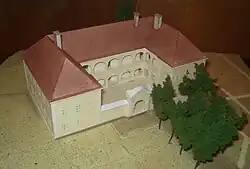 Das Schloss besitzt drei Flügel, die einen geschlossenen Innenhof umfassen, der auf der vierten Seite von einer Mauer mit Portal begrenzt ist. Die Flügel des Innenhofes sind mit Arkaden gesäumt. Bemerkenswert sind der Zentralsalon, die Kapelle und die Treppe. An einigen Stellen sind dekorative Stuckdecken erhalten. Das Schloss wurde 1984 von einem Erdbeben zerstört, danach ausgeräumt und dem Verfall preisgegeben.