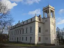 Spätestens um 1842, nach alten Matrikeln sind Zinnitz I und II schon teils seit 1833 in seinen Händen, gelangt das Gut schließlich an den königlich preußischen Geheimen Oberfinanzrat, späteren Finanzminister und Oberpräsidenten der Provinz Brandenburg, Erasmus Robert Freiherr von Patow.[6]:S. 631. Er lässt umfangreiche Baumaßnahmen durchführen, die das vorhandene Herrenhaus in eine spätklassizistische Schlossanlage mit großzügigen Parkanlagen und Wasserflächen verwandeln. Der Kunstgärtner Johann Gottlieb Handschick integriert dabei geschickt das Gewölbefragment eines Vorgängerbauwerks als „Rosenhügel“ mit Pavillon in die Gesamtanlage.