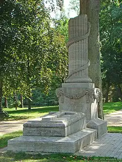 Das Schlossensemble auf der Insel liegt inmitten eines kleinen Schlossparks. Von dem ursprünglichen Barockgarten, der das Mirower Schloss umgab, ist fast nichts erhalten. Der heutige Park ist im Stil englischer Landschaftsgärten gestaltet. Auf der „Liebesinsel“ liegen Grab und das Grabmal von Adolf Friedrich VI., des letzten Großherzogs des Landesteils Mecklenburg-Strelitz. Er starb im Februar 1918 unter ungeklärten Umständen und wurde seinem Testament von 1917 entsprechend, welches schon einen Entwurf für das Grabmal enthielt, auf der „Liebesinsel“ bestattet.