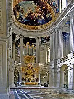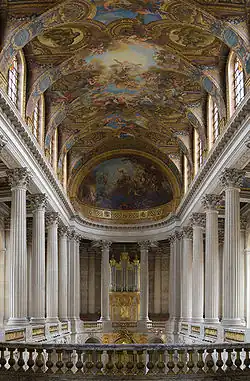 Die 1710 eingeweihte Schlosskapelle des Schlosses von Versailles war das letzte große Bauprojekt unter Ludwig XIV. nach der im 17. Jahrhundert begonnenen Erweiterung des Palastes. Die dem Heiligen Ludwig gewidmete Schlosskirche weicht in ihrer äußeren Gestaltung vom strengen Stil des Palastes ab und wird als barocke Interpretation der gotischen Sainte-Chapelle in Paris betrachtet.[1]