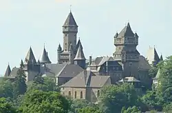 Die Braunfelser Schlosskirche in der Stadt Braunfels im Lahn-Dill-Kreis in Hessen ist eine spätgotische Hallenkirche. Die im Jahr 1501 fertiggestellte dreischiffige Kirche hat einen 3/8-Chor und eine nördlich angebaute Sakristei. Sie diente bis zum Jahr 1883 als Grablege der Grafen und Fürsten von Solms-Braunfels. Die Kirche ist aufgrund ihrer geschichtlichen, künstlerischen, städtebaulichen und wissenschaftlichen Bedeutung hessisches Kulturdenkmal.[1] Sie ist heute Teil des fürstlichen Museums und wird von der evangelischen Kirchengemeinde und seit den 1980er Jahren gelegentlich von der katholischen Gemeinde genutzt.