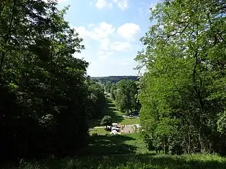 Die Rasenfläche ist an beiden Seiten von vorzugsweise heimischen Gehölzen begrenzt. Insgesamt befinden sind rund 30 Baumarten im Park, darunter Linden, Eichen, Erlen, Buchen, Ulmen, Eschen und der Ahorn, teilweise auch einzelne Fichten und Tannen. Entlang der Wege sind einige Rosskastanien, Platanen und die Kaukasische Flügelnuss gepflanzt. Die charakteristischen Bäume im Park werden durch Hinweisschilder erläutert. Zu sehen sind weiterhin ein Hain von Buchsbäumen, Flieder und der Europäische Pfeifenstrauch.