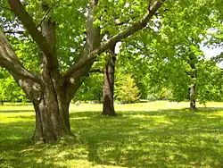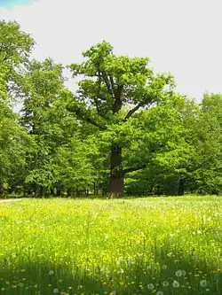 - Alte, aus Nordamerika stammende, Roteichen und Robinien im Südosten des Parks.