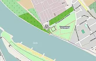 Der Stammheimer Schlosspark, dem sich nach Norden die Flittarder Auenlandschaft anschließt, ist der vorläufige Endpunkt einer schon von Kurt Schönbohm geplanten durchgängigen und öffentlich nutzbaren Rheinpromenade (etwa 11 Kilometer), die von der Südbrücke weiter über den Rheinpark mit der an seinem Nordende eigens für Fußgänger erbauten Mülheimer Hafenbrücke bis Stammheim geführt werden sollte und die bis heute nur teilweise realisiert wurde.[2]