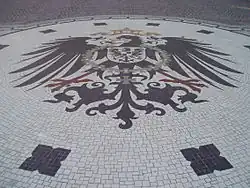 Vor dem Neuen Rathaus ist auf einer auf das Jahr 1905 zurückgehenden historischen Verkehrsinsel ein Mosaik angebracht, welches den kaiserlichen Reichsadler mit dem schwarz-weiß quadrierten Wappenschild auf der Brust zeigt, flankiert vom Provinzialwappen von Hessen-Nassau und vom Wiesbadener Stadtwappen. Das Provinzialwappen geht zurück auf das Jahr 1866, als Nassau von Preußen annektiert wurde. Es zeigt den kurhessischen Löwen, den nassauischen Löwen und das weiße Adlerwappen Frankfurts. Die erklärenden Hinweistafeln der Wappeninsel beschreiben das zentrale Wappen als preußisch, das Provinzialwappen als nassauisch.