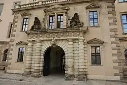 - ↑ Löffler, S. 38 Bildnr. 39 [Das Portal des Residenzschlosses in der Schloßgasse, Eingang zum Kleinen Schloßhof], S. 42