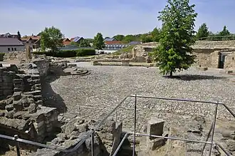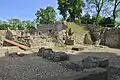 Bei den im September 2000 begonnenen Ausgrabungsarbeiten des 1958 abgerissenen Schlosses fanden sich unter den Schuttmassen der ursprünglich dreigeschossigen Anlage das Kellergewölbe und beträchtliche erhalten gebliebene Teile des Erd- und ersten Obergeschosses. Man legte eine polygonale Ringmauer frei, in der eine Kapelle eingeschlossen war, deren Bausubstanz in die Zeit um 1230 datiert. Stellenweise ist das in erstaunlicher Werksteinqualität hochgezogene Mauerwerk noch bis zu acht Meter hoch. Weitere Mauerzüge und Kellergewölbe sowie ein mächtiger Erdwall mit Graben stammen aus einer Bauphase von 1555 bis 1557. Der Renaissancebaumeister Nikolaus Gromann betreute diese Erweiterungen und ließ die romanischen Burgmauern mit einem acht Meter hohen und bis zu fünfzehn Meter breiten Wall verstärken. Weitere Gewölbe kamen kurz vor 1600 hinzu. 1627, bei einem Brand während des Dreißigjährigen Kriegs, fielen Teile des Schlosses dem Feuer zum Opfer und wurden wieder errichtet. Dabei wurde der ovale Schlosshof mit einem Arkadengang versehen (1647–1690).