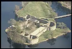 Die Ruine liegt etwa fünf Kilometer nördlich der Bezirkshauptstadt Växjö auf einer Insel nahe dem Ufer des Helgasjön.