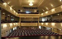 Der 349 Plätze umfassende Zuschauerraum besitzt zwei Emporen.