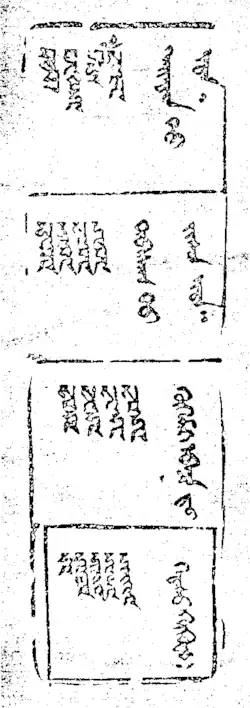 - ↑ Walther Heissig: Heilung durch Zettelschlucken. In Walther Heissig, Claudius C. Müller (Hrsg.): Die Mongolen. Bd. 2. Pinguin-Verlag, Innsbruck 1989, ISBN 3-7016-2297-3