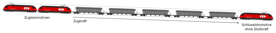 - Schiebelokomotiven, die Stoßkräfte übertragen