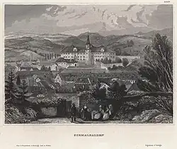 Schmalkalden trat im Jahre 874 erstmals als „villa Smalacalta“ in einer Urkunde neben Wasungen und Schwallungen als einer derjenigen Orte im Grabfeldgau auf, den die dem fränkischen Hochadel angehörige Edle Kunihilt dem Kloster Fulda übereignete[3].