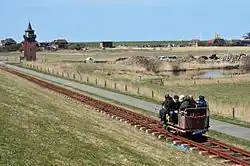 Nur die beiden schmalspurigen Materialbahnen des Amts für ländliche Räume (ALR) zu den Halligen Nordstrandischmoor (Feldbahngleis) sowie Oland und Langeneß (900 mm) sind noch in Betrieb.