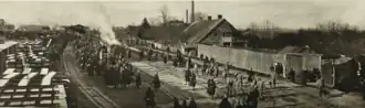 - ↑ K. u. k. Lokomotifeldbahn Nr.1 - Umladebahnhof Jędrzejów von Vollbahn auf Lokomotivfeldbahn und Umladebahnhof im Bau.