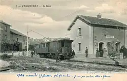 - Der ehemalige Bahnhof von Vaugneray wird heute von der DDE genutzt[Anm. 3]