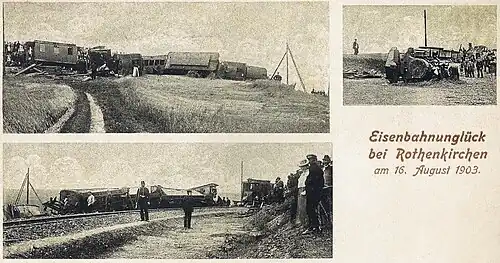 Am Abend des 16. August 1903 ereignete sich ein schwerer Unfall, als durch überhöhte Geschwindigkeit zwischen Bärenwalde und Rothenkirchen ein talwärts fahrender Zug entgleiste.[18] Dabei kamen drei Menschen ums Leben, mehr als 60[19] wurden verletzt; nach anderen Angaben gab es nur 42 Verletzte, davon erlitten 12 schwere Verletzungen.[20]