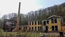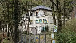 - Am unteren Ausgang des Schmelztals befand sich seit etwa 1900 die Großwäscherei Mesenholl, die zur 100 m oberhalb gelegenen Lungenklinik Hohenhonnef gehörte und mit dieser über eine etwa 500 m lange Standseilbahn verbunden war.[5][6] Seit der Schließung der Wäscherei in den 1980er-Jahren sind die Werksgebäude leerstehend und waren bis zuletzt dem Verfall preisgegeben. Seit 2018 gibt es konkrete Planungen des Eigentümers für eine Wohnnutzung auf dem Areal, wobei das bestehende Hauptgebäude erhalten bleiben soll.[7]