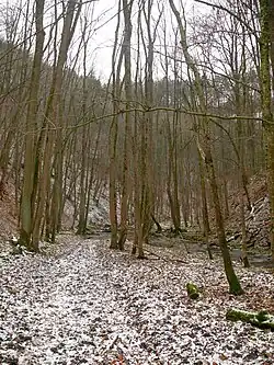 - ↑ Geotope, meist Dolinen, nach dem einschlägigen Layer. Im Gelände, vor allem im Wald, findet man noch viele mehr als dort ausgewiesen.