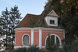 Die Zentralbau wurde 1739 nach einem Entwurf von Franz Xaver Kleinhans erbaut. Er besteht aus einem quadratischen Langhaus, an das im Westen der halbrund geschlossene Chor angebaut ist. Im Osten befindet sich ein gleichartiges Vestibül.