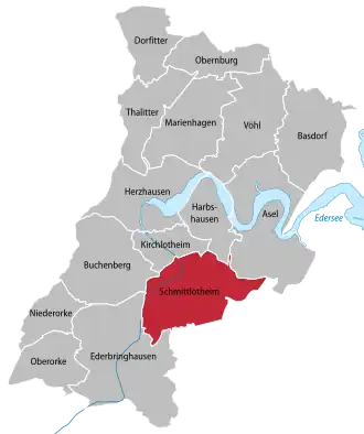 - ↑ Wissenswertes über Schmittlotheim – Nationalparkgemeinde Vöhl am Edersee. Abgerufen am 1. Februar 2022.