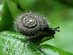 Schnecken (Gastropoda, griechisch für ‚Bauchfüßer‘), von althochdeutsch snahhan, ‚kriechen‘, sind eine Tierklasse aus dem Stamm der Weichtiere (Mollusca). Es ist die artenreichste der acht rezenten Klassen der Weichtiere und die einzige, die auch landlebende Arten hervorgebracht hat. Die meisten Schneckenarten leben in Gewässern. Die Körpergröße der adulten Schnecken variiert von unter 0,5 mm (Ammonicera rota, Familie Omalogyridae) bis zu über 90 cm (Große Rüsselschnecke Syrinx aruanus).[1]