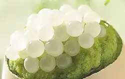 Schneckenkaviar ist eine Kaviaralternative, die aus frischen oder verarbeiteten Eiern von Landschnecken, hier üblicherweise von Weinbergschnecken, hergestellt wird. International werden auch die Bezeichnungen Escargot-Kaviar oder Escargot-Perlen verwendet.[1][2][3]