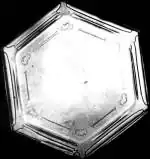 Schnee entsteht, wenn sich in den Wolken feinste Tröpfchen unterkühlten Wassers an Kristallisationskeimen (zum Beispiel Staubteilchen) anlagern und dort gefrieren. Dieser Prozess setzt jedoch erst bei Temperaturen unter −12 °C ein, wobei Wasser in Abwesenheit von Kristallisationsansätzen bei bis zu −48 °C[2] flüssig bleiben kann.[3] Die in Wolken natürlich entstehenden Eiskristalle, weniger als 0,1 mm groß, fallen durch zunehmende Masse nach unten und können infolge des unterschiedlichen Dampfdrucks von Eis und unterkühltem Wasser weiter anwachsen. Darüber hinaus resublimiert der in der Luft enthaltene Wasserdampf, geht also direkt in Eis über, und trägt damit zum Kristallwachstum bei. Es bilden sich die bekannten sechseckigen Formen aus. Wegen der besonderen Struktur der Wassermoleküle sind dabei nur Winkel von exakt 60° oder 120° möglich.