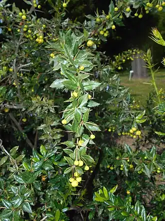 Mit der Gewöhnlichen Mahonie (Berberis aquifolium Pursh, Syn.: Mahonia aquifolium (Pursh) Nutt.) bildet die Schneeige Berberitze (Berberis candidula) die Gattungshybride ×Mahoberberis aquicandidula H.Jensen.