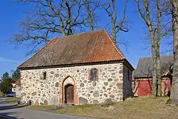 Die kleine turmlose Kapelle mit kleinen Fenstern hat bis heute kein elektrisches Licht. 1543 wird sie erstmals erwähnt, wurde wohl im 13. Jahrhundert erbaut.[15] Innenraum und Altar sind schlicht gestaltet. Die mit einem Spitzbogen versehene Eingangstür wird von zwei großen Wächtersteinen verziert. Die Glocke von 1493 hängt draußen in einem Glockenstuhl. Früher war sie in der Kapelle angebracht.[16]