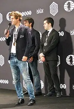 - ↑ Carlsen gewinnt die Schnellschach-WM. In: sueddeutsche.de. 12. Oktober 2015, abgerufen am 13. August 2018.