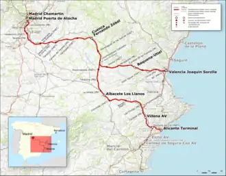 | Schnellfahrstrecke Madrid–Levante | |||||||||||||||||||||||||||||||||||||||||||||||||||||||||||||||||||||||||||||||||||||||||||||||||||||||||||||||||||||||||||||||||||||||||||||||||||||||||||||||||||||||||||||||||||||||||||||||||||||||||||||||||||||||||||||||||||||||||||||||||||||||||||||||||||||||||||||||||||||||||||||||||||||||||||||||||||||||||||||||||||||||||||||||||||||||||||||||||||||