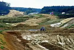 Die noch im Bau befindliche Strecke nahe dem Autohof Hilpoltstein. Gut zu erkennen ist die Steigung, die auf der Neubaustrecke maximal 20 Promille erreicht.