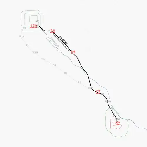 Die zweigleisige Strecke verbindet auf einer Länge von 117 km die Hauptstadt Peking (Südbahnhof) mit der Hafenstadt Tianjin. Sie ist für eine Betriebsgeschwindigkeit von 300 km/h projektiert.[1] Die Trassierung erlaubt Geschwindigkeiten von bis zu 350 km/h.[2]