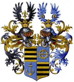 - ↑ Wappen der Familie Schoeller auf Seite 5 ( des vom 15. Dezember 2012 im Internet Archive) Info: Der Archivlink wurde automatisch eingesetzt und noch nicht geprüft. Bitte prüfe Original- und Archivlink gemäß Anleitung und entferne dann diesen Hinweis.