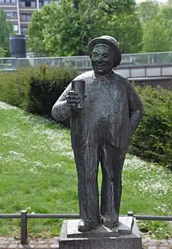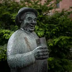 Als „Schöpfer“ der Statue gilt der Mainzer Porzellanfabrikant Heinz Schaubach, der Mitglied der Ehrbaren Mainzer Weinzunft von 1443 und gleichzeitig deren erster Gestalter der Zunftchronik war. Schaubach stiftete das Bronzedenkmal der Stadt Mainz zu ihrer 2000-Jahr-Feier im Jahr 1962.