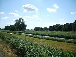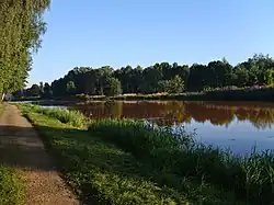 Zusammenfluss von Hauptschradengraben und Großthiemig-Grödener Binnengraben am Schöpfwerk in Elsterwerda