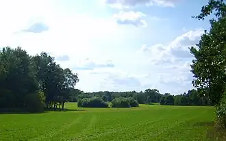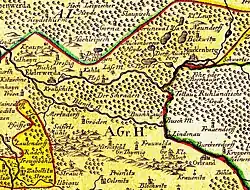 Bis zu den großen Regulierungs- und Meliorationsmaßnahmen in der Niederung war der Schraden oder auch Schradenwald, der urkundlich 1210 erstmals als nemus Ztradim erwähnt wurde, eine eigenständige große Flur.[22] Nach dem Abschluss des mittelalterlichen Landesausbaus in diesem Gebiet und der Anlage von Siedlungen an den Niederungsrändern im Inneren des Niederungsgebietes verblieb ein ausgedehnter Niederungswald. Im 14. Jahrhundert wurden mehrere Herrschaften, unter ihnen die Grundherren von Elsterwerda und Großkmehlen, von den Meißner Markgrafen mit Teilen des Schradenwaldes belehnt. Zahlreiche Städte und Dörfer der Region besaßen dort Waldnutzungsrechte, für die ein Waldzins zu entrichten war.