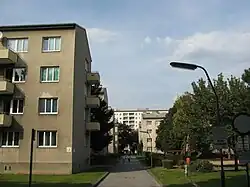 Das westlichste der vier Häuser der „Kleinwohnungsanlage“ Buchengasse 7–9 ist der Schrankenberggasse mit seiner Breitseite zugewandt. Die Anlage wurde 1912 von Leopold Ramsauer und Otto Richter erbaut und gilt als eine Vorläuferin des sozialen Wohnbaus.[1] Sie ist mit dem Arbeitercottage (nächster Abschnitt) von der Stadt Wien zur baulichen Schutzzone Arbeitercottage-Kiesewettergasse zusammengefasst.
