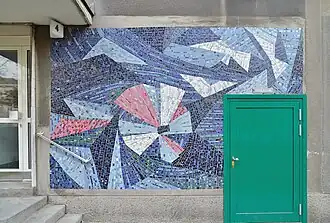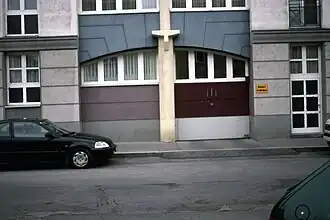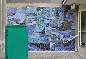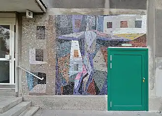 An einer der Wände des Gebäudes befand sich ein großformatiges keramisches Mosaikbild Schutzmantelmadonna aus dem Jahre 1958 von Hedwig Wagner.