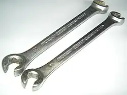 Schraubenschlüssel bestehen üblicherweise aus legiertem Werkzeugstahl.[8] Die meisten Schlüssel sind pulverbeschichtet oder verchromt.