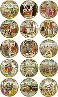 Bildeinlagen einer Schraubmedaille, handkolorierte Kupferstiche von Abraham Remshart (1732) |